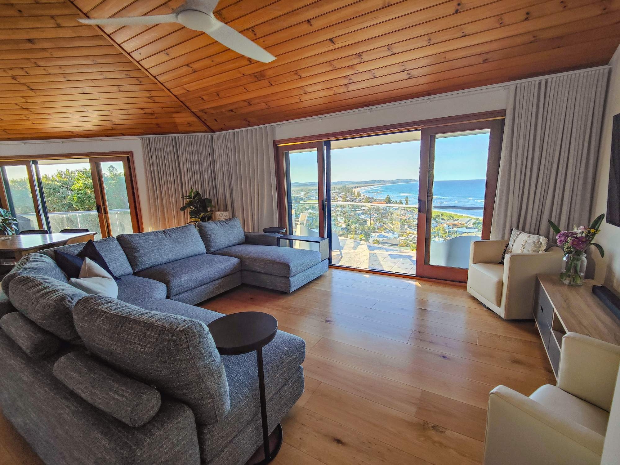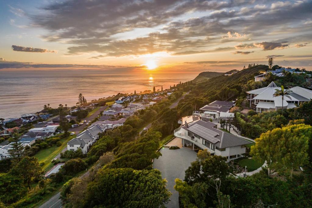 Perched on an escarpment with panoramic views yet also walking distance to Lennox Head Village and Seven Mile Beach.