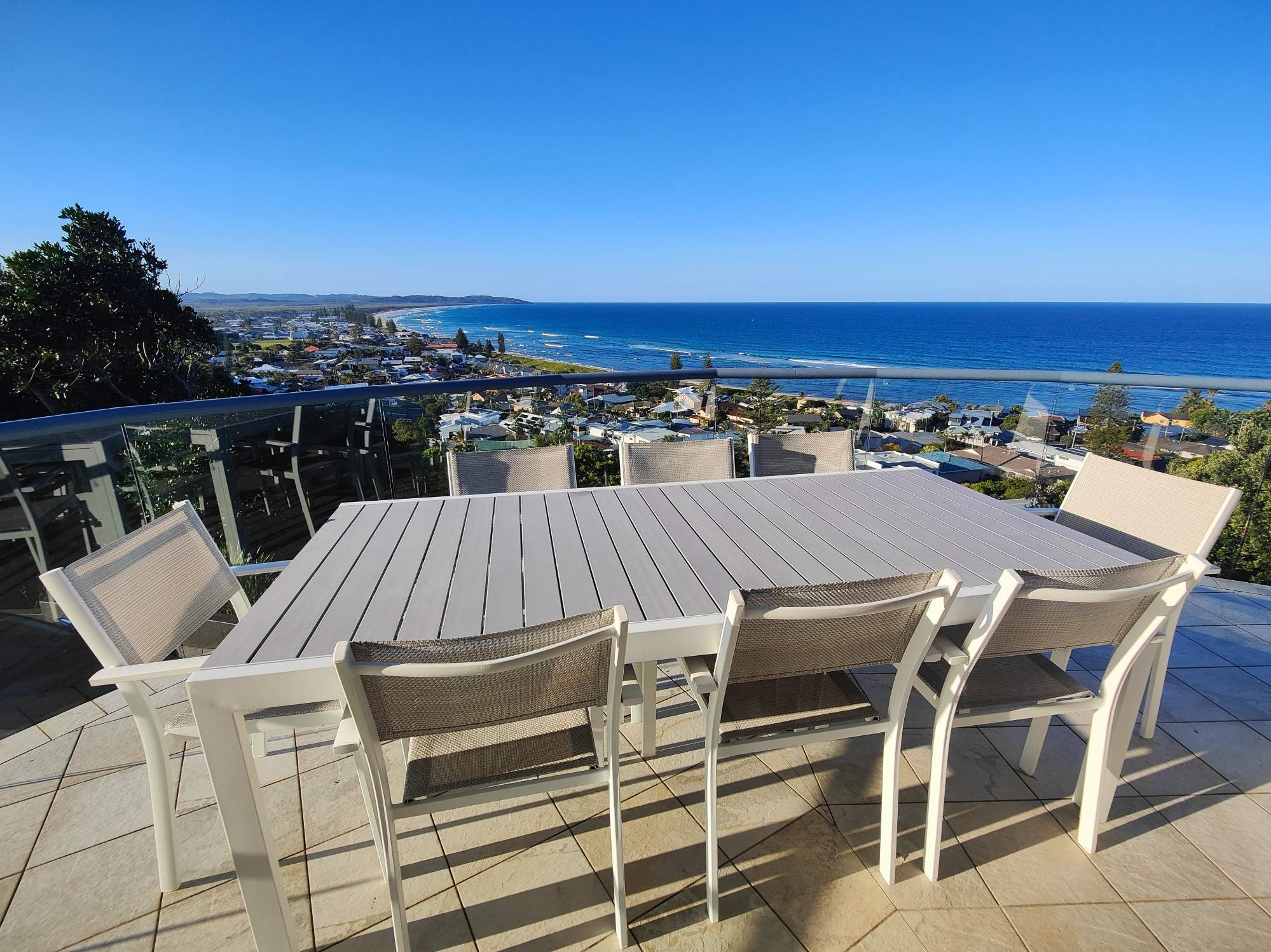 Dining table and BBQ on the floating balcony is the perfect place to enjoy a meal, watch the whales migrate (May to October), take in a sunrise or sunset and simply absorb the mesmerizing view.