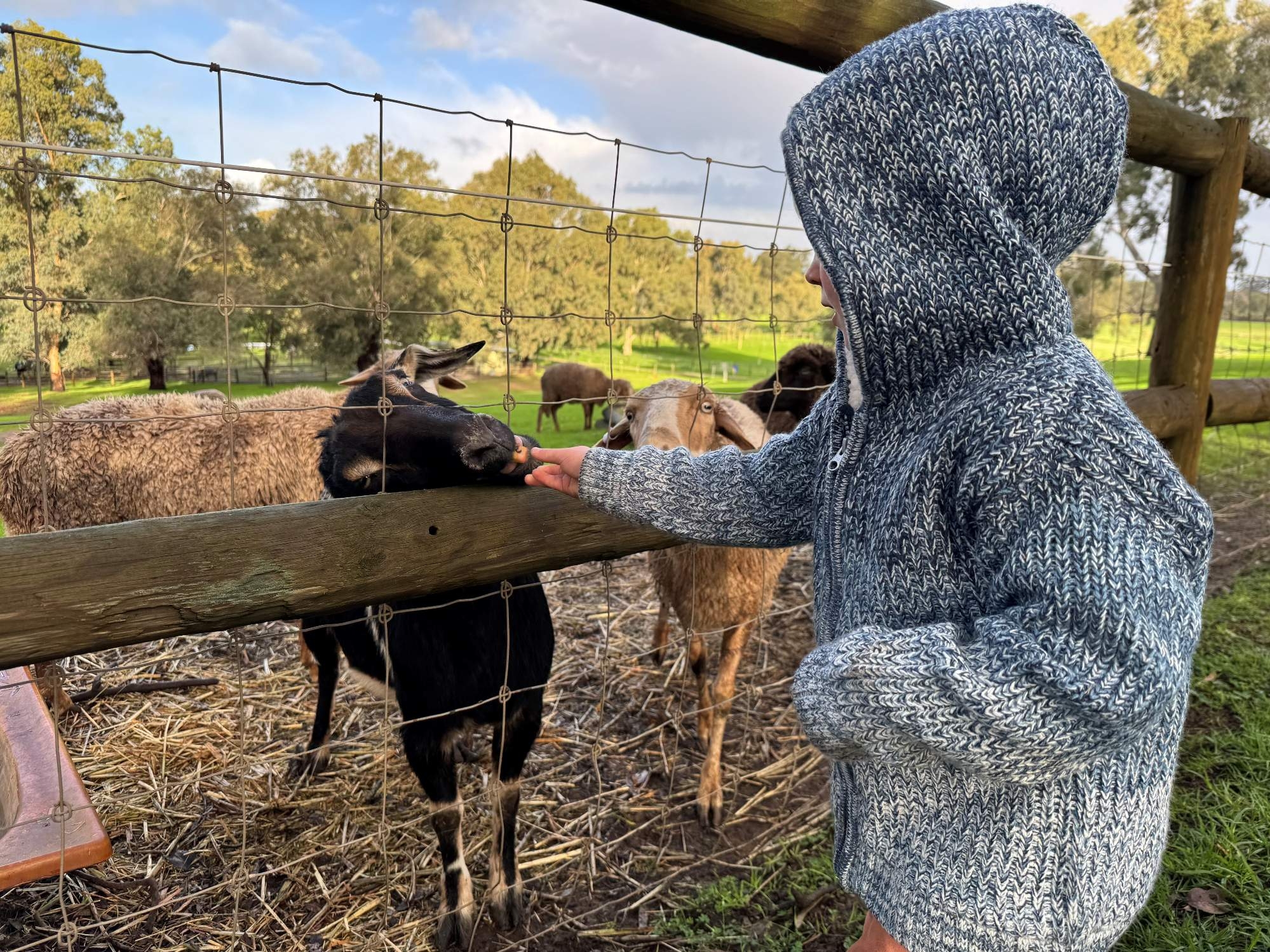 Three bedroom cottage perfect for families, fully self-contained on a 14 acre farm centrally located in the Swan Valley, 16 kilometres from Perth. Two generous size bedrooms, main bedroom queen bed, second bedroom double and one single, third smaller bedroom two singles. Separate bathroom and separate laundry with washing machine and dryer. Quality linen and bath towels provided. Own food supplies required, or visit one of the many restaurants, wineries or cafes nearby. Separate dining room adjacent to the fully equipped kitchen, provides glorious views over the farm to the hills. Gas BBQ. Caversham Wildlife Park and Margaret River Chocolate Factory, two must visits, are only a five minute drive. Guests are welcome to hand feed the friendly goats, sheep, lambs, chickens in their own time. BYO carrots for animal feeding.