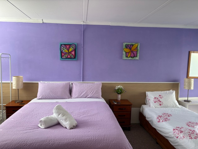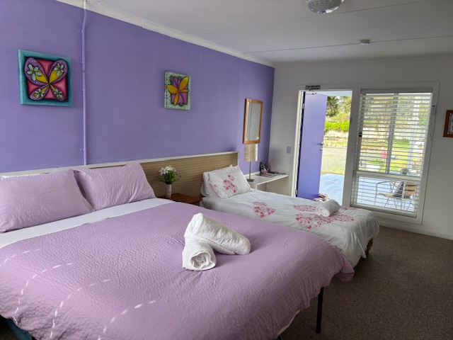 The family room offers air conditioning, a private entrance, as well as a private bathroom with a walk-in shower. This family room has a flat-screen TV and a terrace. There are grab rails in the shower and next to the toilet.