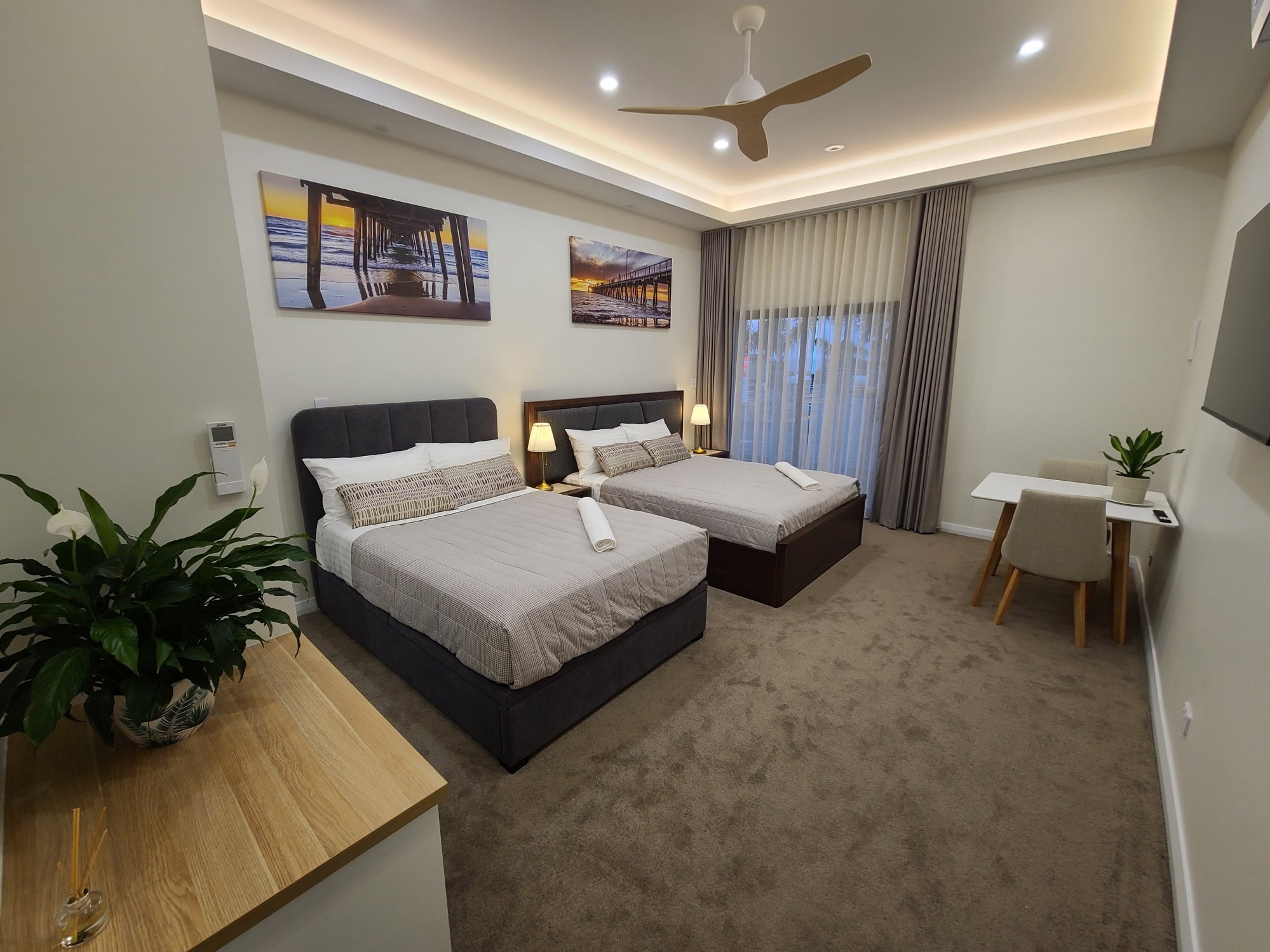 We have 29 ground floor units including spacious Executive King Suites, Executive Queen and Twin suites, Standard Queen and Twin rooms as well as an Executive Two Bedroom Family suite. Each room has access to free strong WiFi, is air-conditioned and offers a flat-screen TV and ironing facilities and free on-site parking at your door.