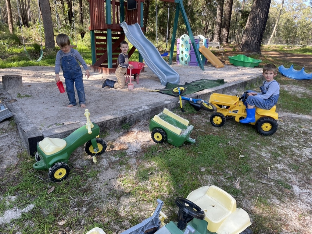 Ride ons, bikes, playground, trampoline and endless outdoor space for games for the whole family.