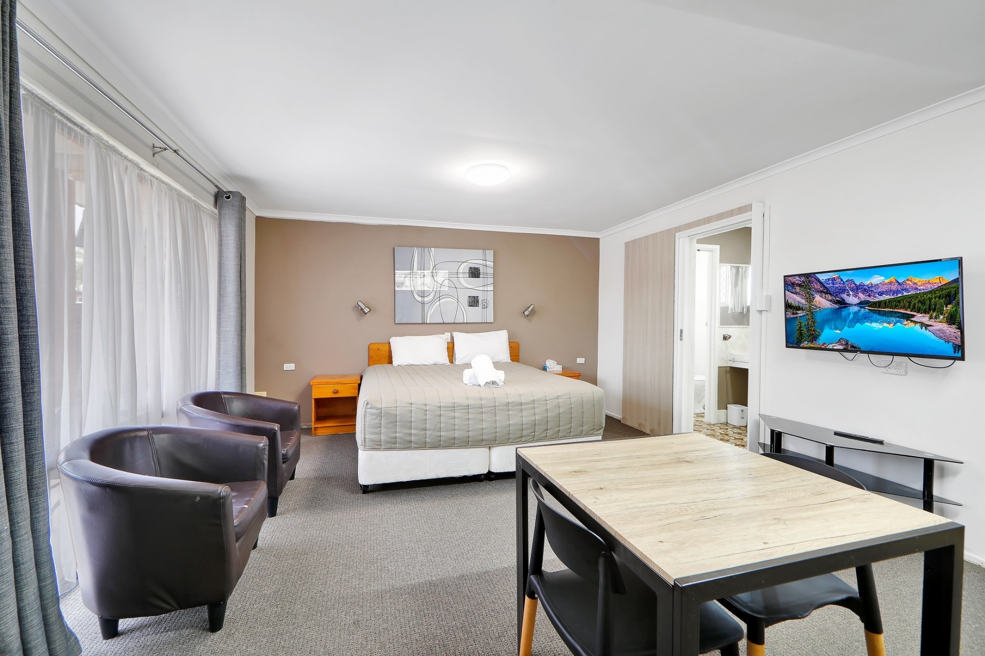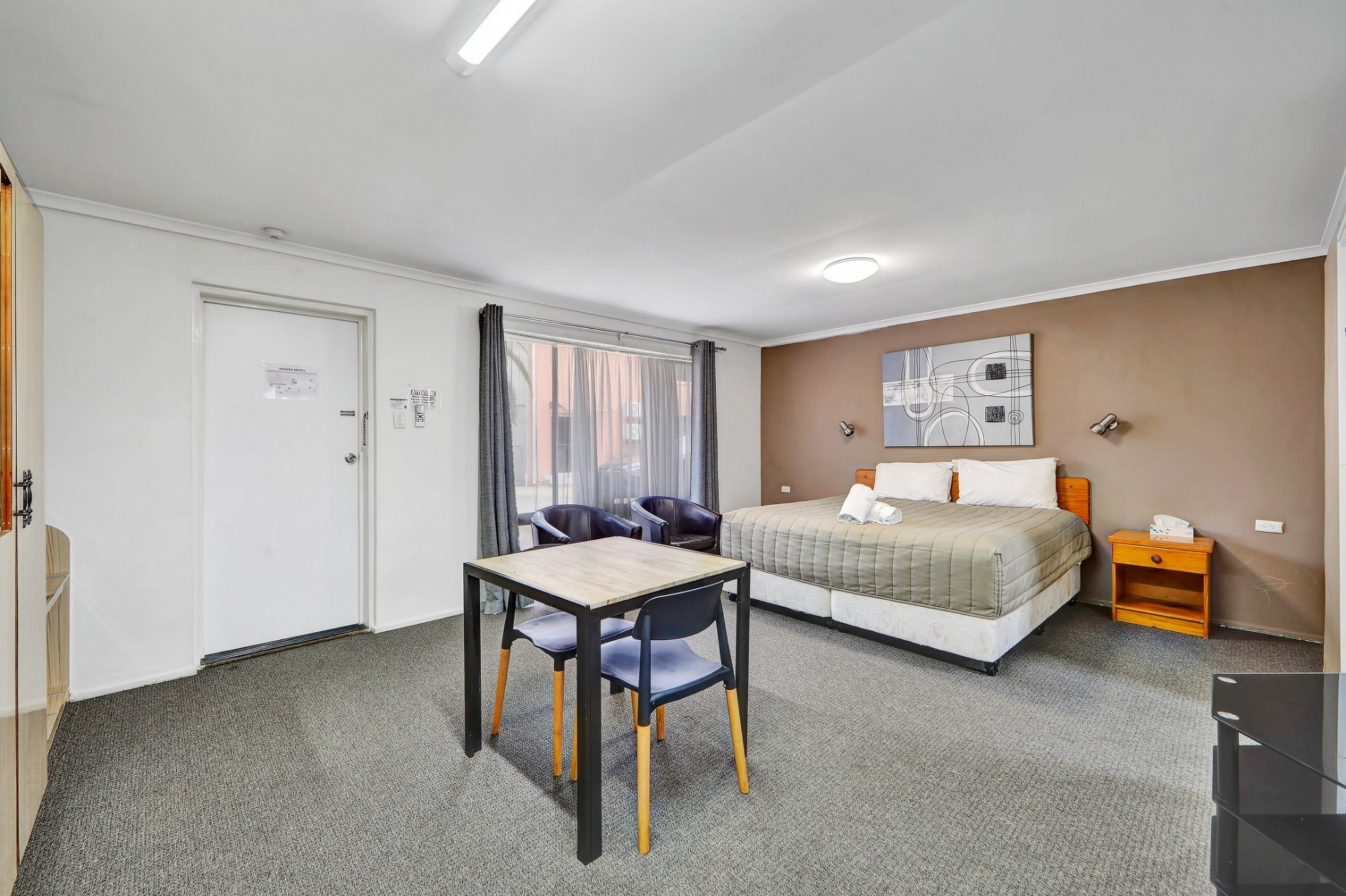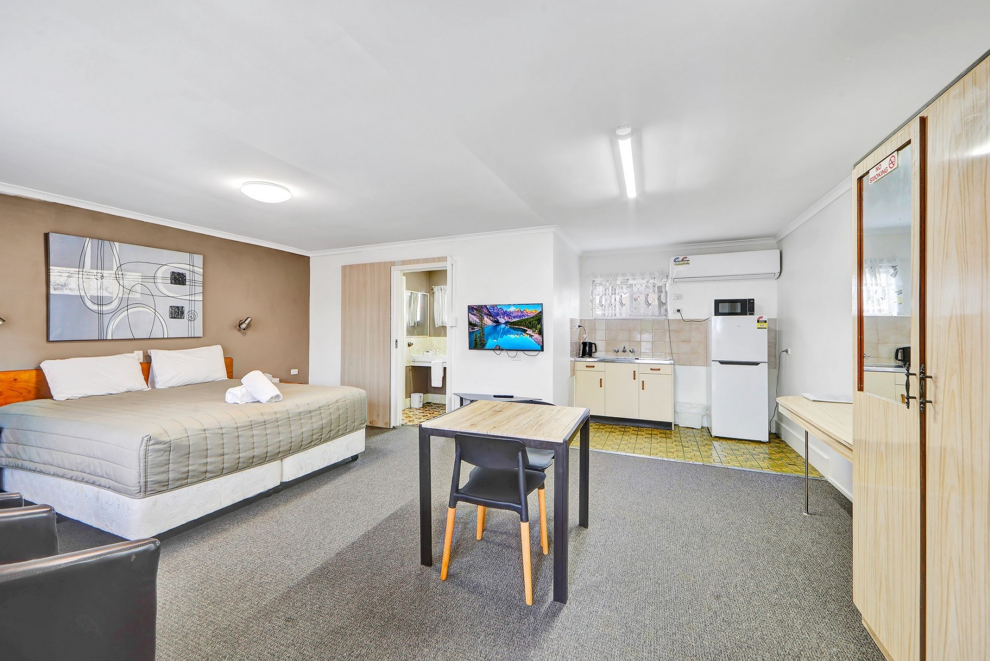 This larger, air-conditioned studio features a 32-inch flat-screen TV with a DVD player. It offers a kitchenette with a microwave, a refrigerator and tea/coffee making facilities, including free tea, coffee and biscuits. This room is located in the quietest area of the motel.