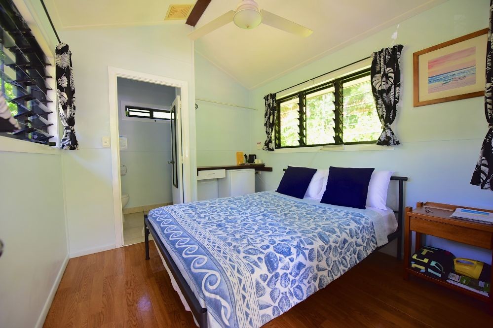 Our bungalows are solar powered and offer queen size bed, ensuite bathroom, ceiling fan, fully screened, bar fridge, tea/coffee making facilities, their own private bbq area and private verandah with views of the Coral Sea. They are located just across the road from the beach.