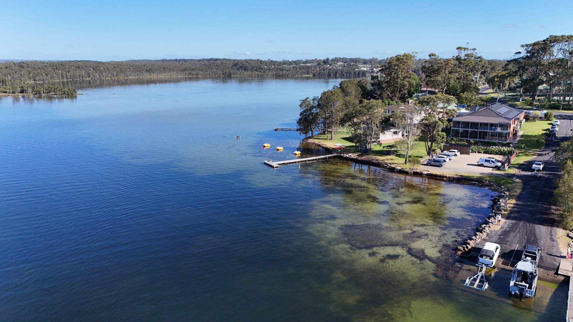 Dungowan Waterfront Apartments is absolute waterfront property on an acre of land on St. Georges Basin, next to the boat ramp in beautiful Erowal Bay.