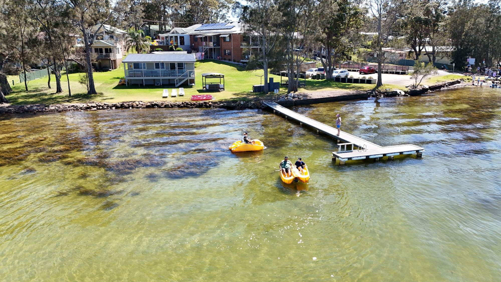 This is a relaxed family friendly atmosphere with barbecue facilities, free kayaks, pedalboat rentals and outdoor picnic areas.