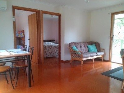 Each cottage has kitchen facilities, R/C air, TV/ DVD and linen provided. The two bedroom cottage has a Queen Size bed and bunks and the three bedroom cottage has Queen Size bed, Double bed and bunks. Under cover BBq area is provided for leisurely outdoor meals with space around for the kids to play.