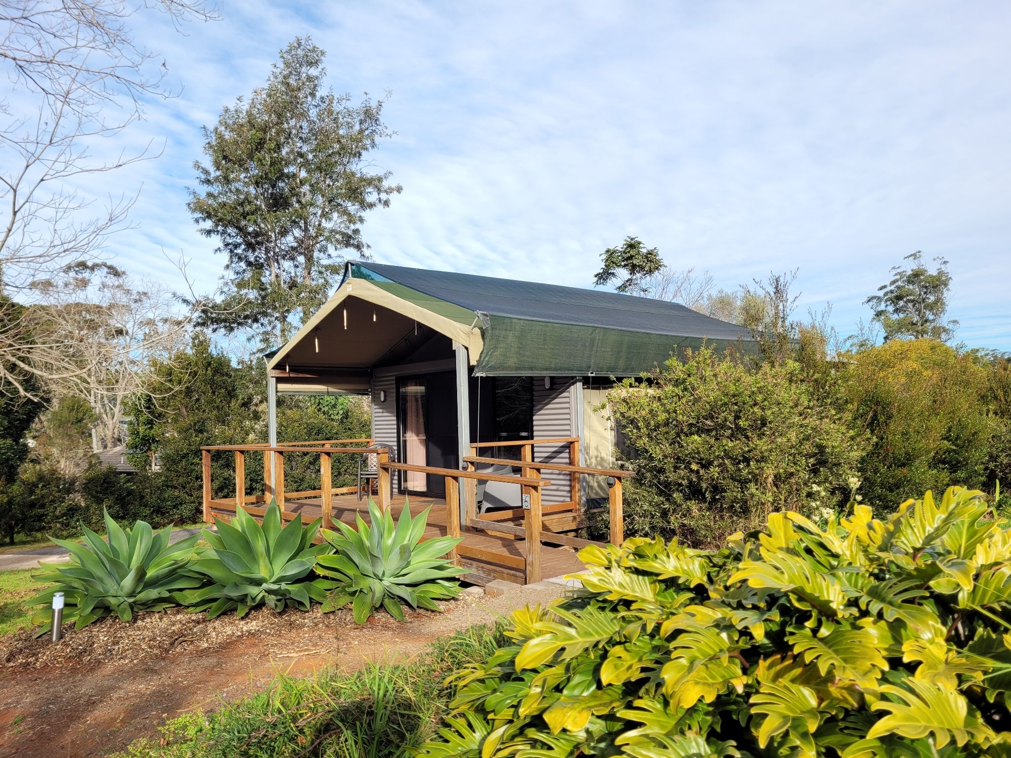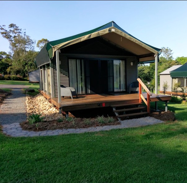 Self contained with kitchen and your own ensuited bathroom. Screened glass front door enable you to take in the view of the property's garden or acreage. Sleep soundly in a Queen bed and Double bed, with trundle option. Bedding and linen can be provided at additional cost. The comforts of home under a canvas roof.